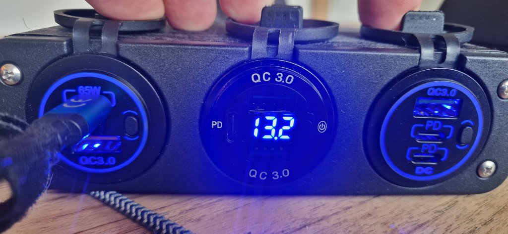 Hieronder nog even een paar foto's. Dat USB-laad 'kassie' lijkt misschien wat overdreven met 3 van die laders, bij de eerste bestelling bleek dat de laptop niet opgeladen kon worden omdat de USB-C 'PD' poort niet voldoende vermogen kon leveren, later heb ik een wel werkend exemplaar gevonden. En daarnaast weet je nu dat je in ieder geval voldoende USB oplaad poortjes hebt om te kunnen gebruiken.
