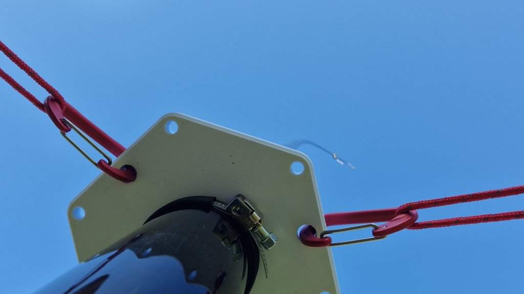 Ook heb ik nog even een paar fotos bij gezet hoe ik mijn Spiderbeam mast op een grasveldje neer kan zetten. De witte tui-plaat is eigen fabrikaat (geen eigen ontwerp!), de mastvoet is wel eigen fabrikaat/eigen bedenksel.