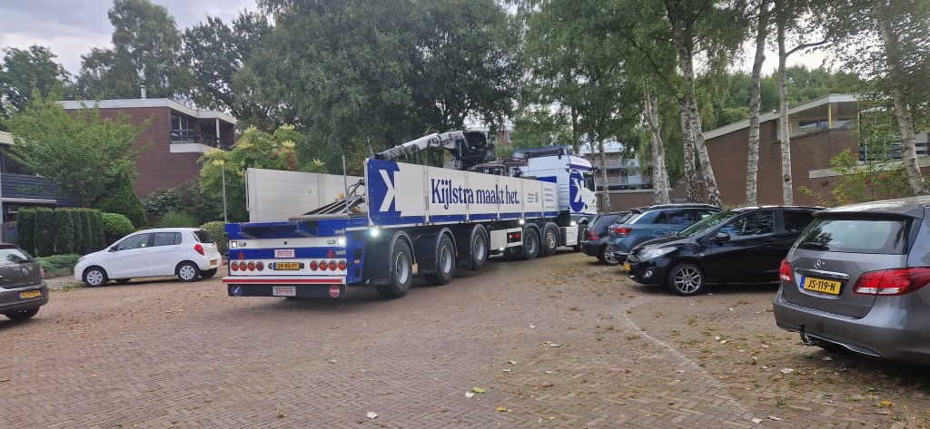 Op Vrijdag 29 augustus is onze nieuwe blokhut afgeleverd door Fa. Kijlstra. Na een knap staaltje (achteruit) sturen van de chauffeur is het pakket in één keer op de stoep gezet zo dicht mogelijk bij onze deur.