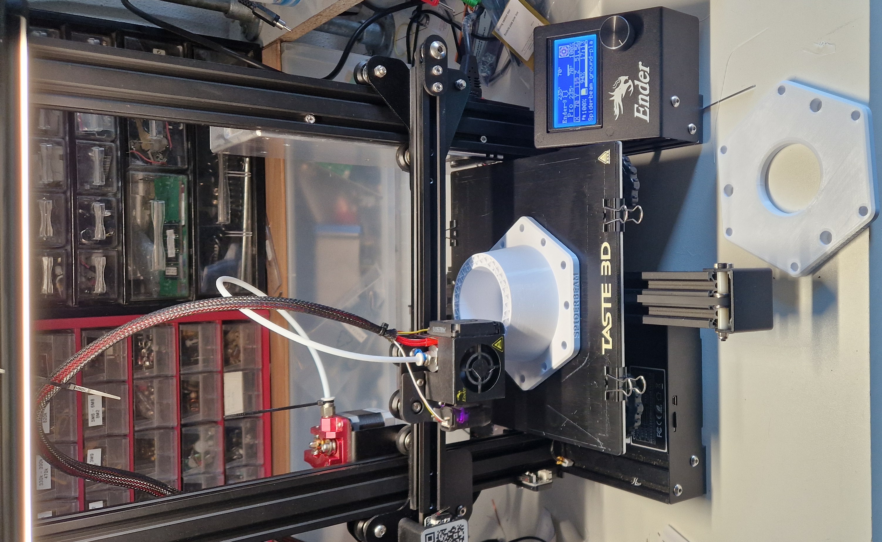 Om een alternatieve manier van het opstellen van een 12m glasfibermast te vinden grijp ik nu naar mijn 3D printer. Op het web (Printables.com) kwam ik een ontwerp tegen dat mij wel aanstaat en ook ontworpen is voor de mast die ik heb, n.l. een 12mtr lange Spiderbeam (ja, weer HF-kits.nl! Die begint bijna mijn hof-leverancier te worden). Dit ontwerp bevat een tui-plaat en een voet-plaat (beiden in veschillende maten). Even uitzoeken dus welke je moet hebben voor jouw mast. De prints worden hier gemaakt met PETG filament, en de praktijk resultaten moeten nog op zich laten wachten omdat ik nog tentharingen hebben moeten nog een paar scheer-lijnen.