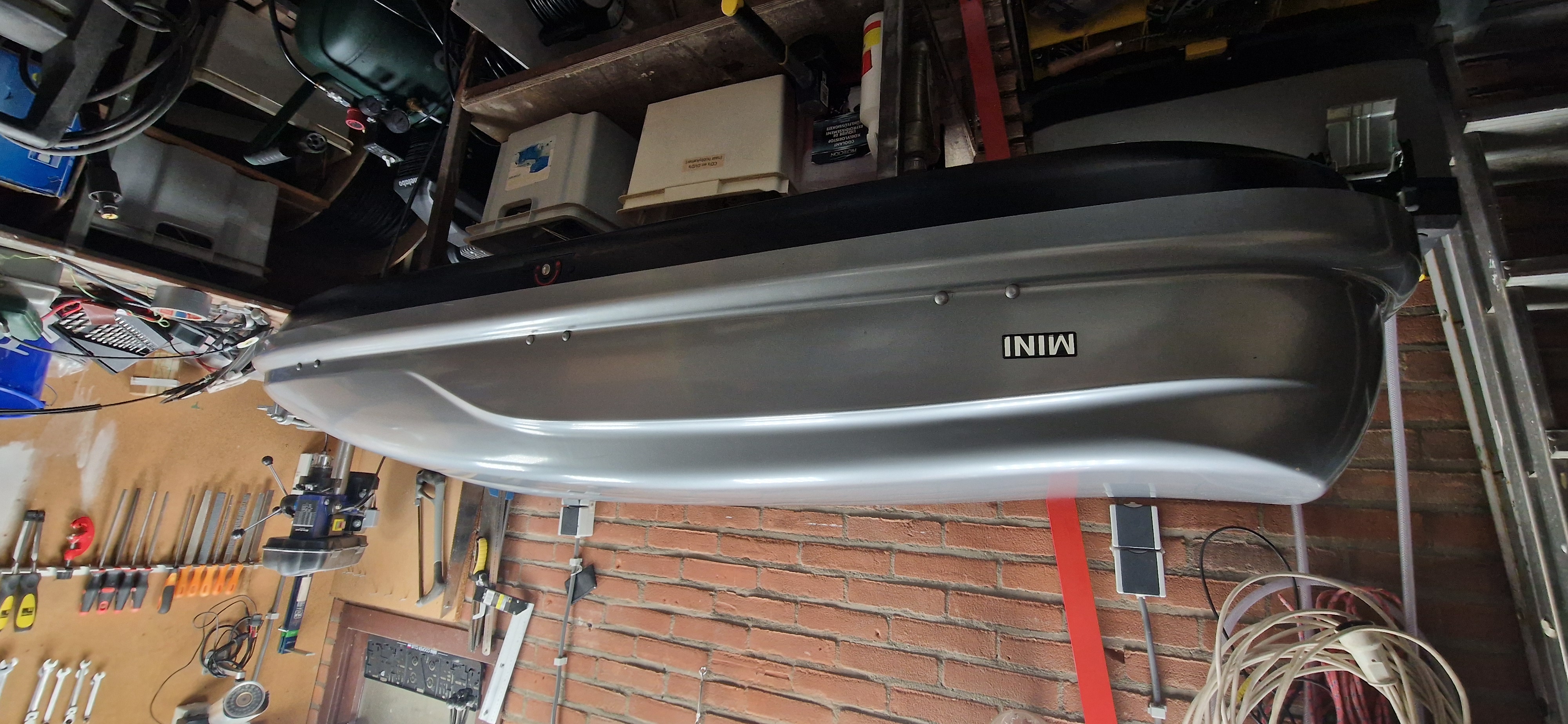 Hier onder nog even één foto van de aangeschafte dak-koffer, foto's van de binnenkant en hoe het op het dak van onze Countryman lijkt volgen nog.