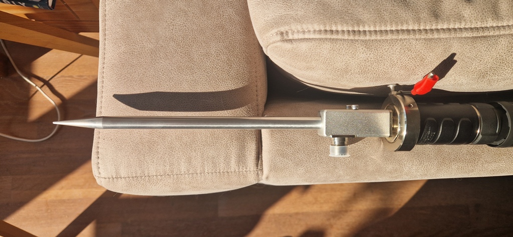 Het handige van zo'n grond-pen is dat je deze vrijwel overal de grond in steken kunt om bijvoorbeeld de ATAS-120 op te kunnen zetten. Deze pen is niet zo lang als Mike in zijn filmpje laat zien, maar deze doet zijn werk ook prima voor mijn doel. Bijkomend is dat als ik de pen er af schroef en er daneen adapter in draai ik ook een fotostatief gebruiken kan. (zie foto's hieronder)